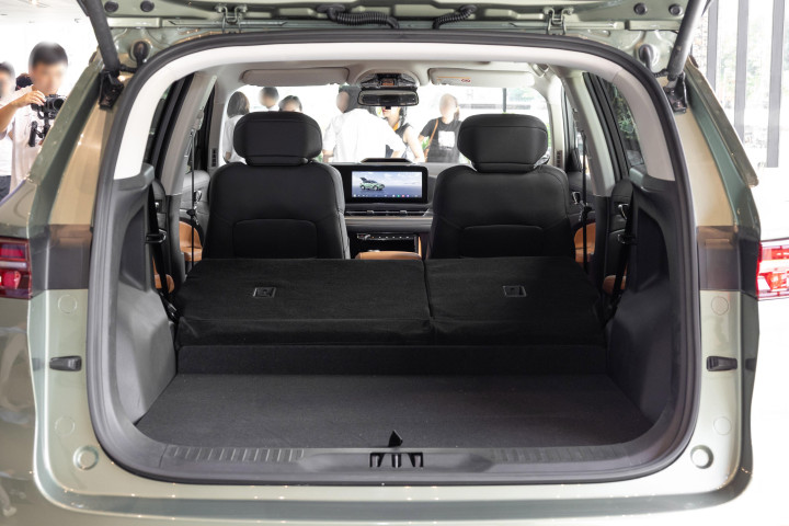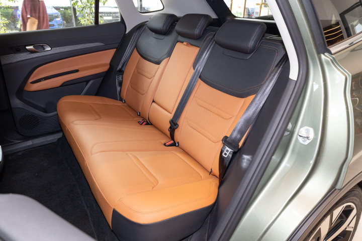 我们找了一位身高182cm的体验者实测,调整好主驾驶位座椅后,头部仍有一拳余量,腿部空间舒展,电动调节的座椅搭配腰部支撑,哪怕每天通勤1小时也不会觉得疲惫。移步后排,腿部空间更是达到了两拳半,头部空间同样宽裕,更关键的是,1935mm的车宽让后排横向空间足够充裕,三个成年人并排而坐也不会觉得肩部拥挤。对于有两个孩子的家庭来说,后排中间装上儿童安全座椅后,两侧的成年人依然能保持舒适的坐姿,再也不用为“谁坐中间”而纠结。