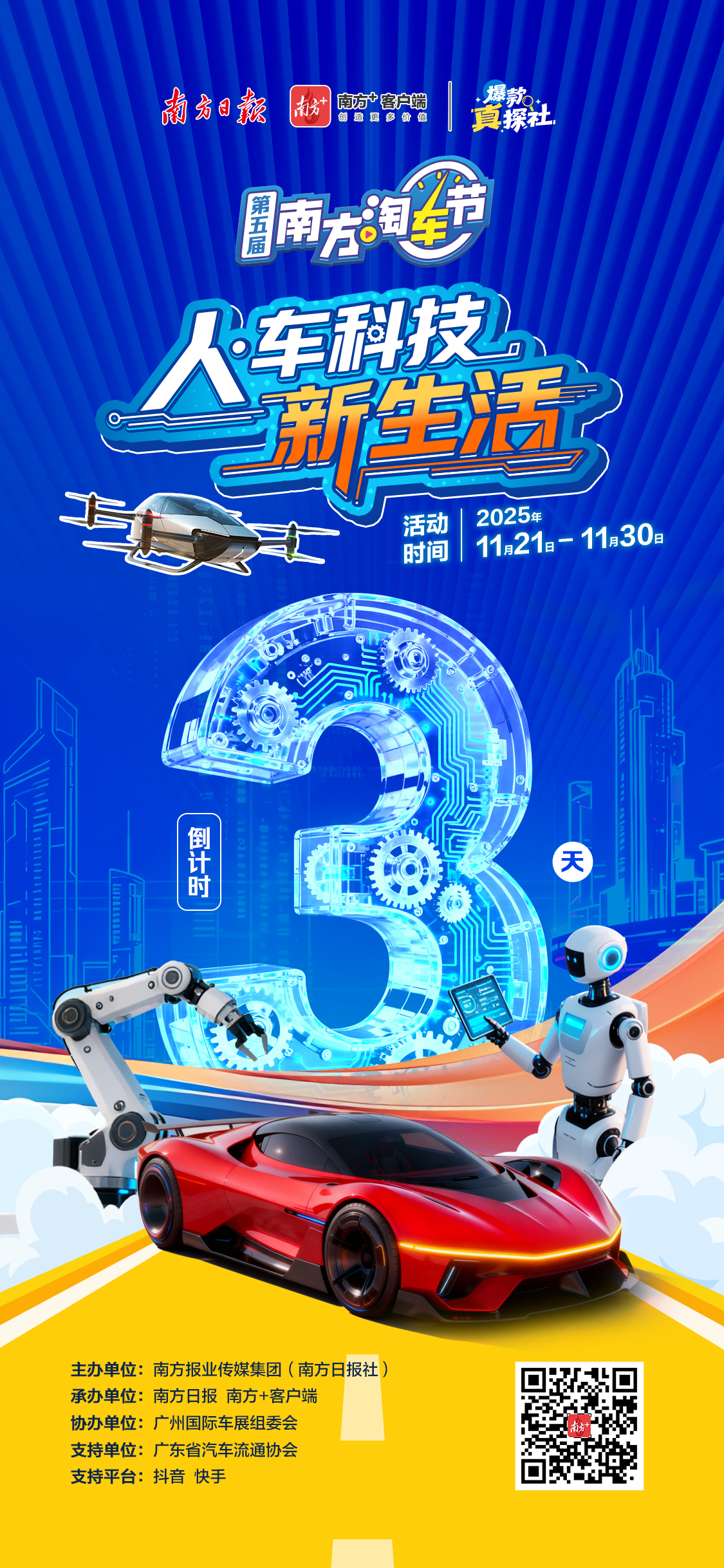广州车展期间,由南方日报、南方+客户端联合举办的第五届南方淘车节也将正式启动,跨界达人面对面,火爆新车“一站淘”,带你在广州国际车展现场直播侃车,带来看车、玩车互动新体验。